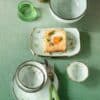 cosmos vert, fleurs japonaises, vert pastel, vaisselle, bols, assiettes, tasses, ambiance de cuisine.