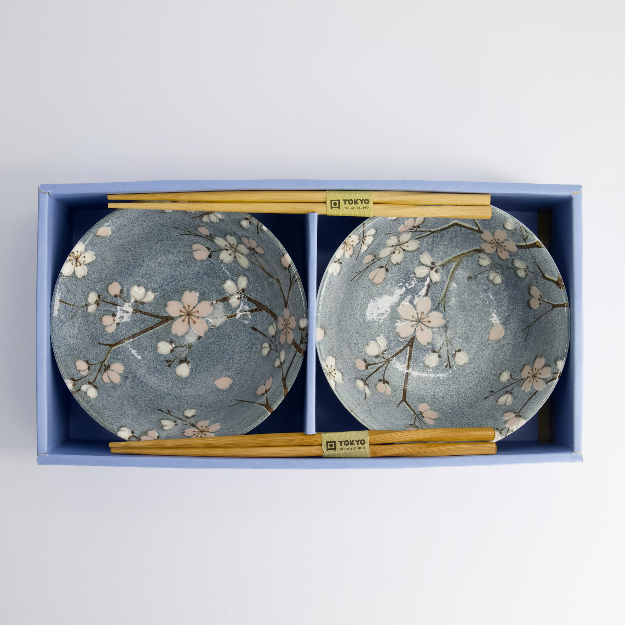 Tokyo Design Studio – Fujisakura – Ensemble cadeau bol Tayo 2 pièces avec baguettes – 15,2×6,7 cm – 500 ml – Gris