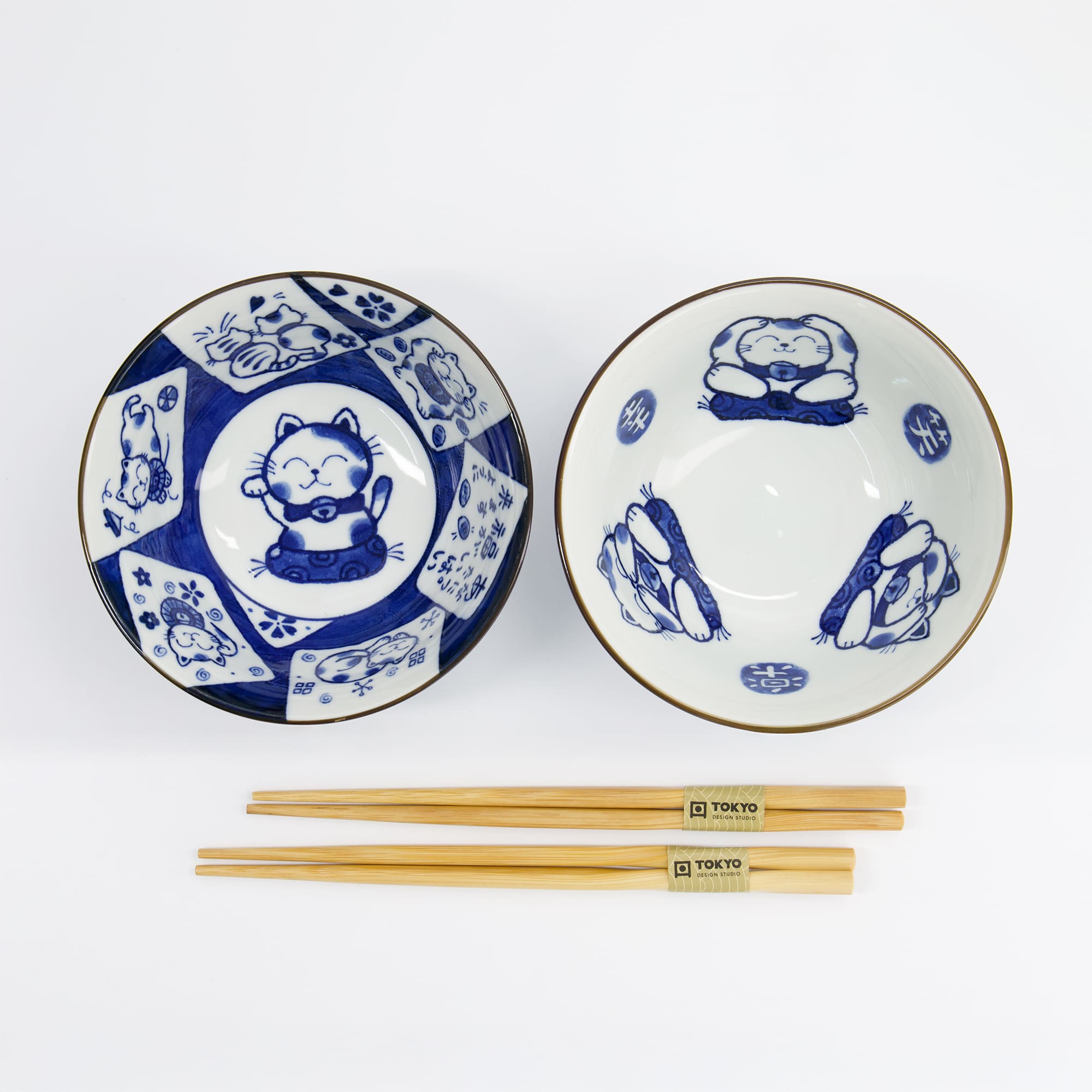 • Coffret de 2 bols avec baguettes assorties